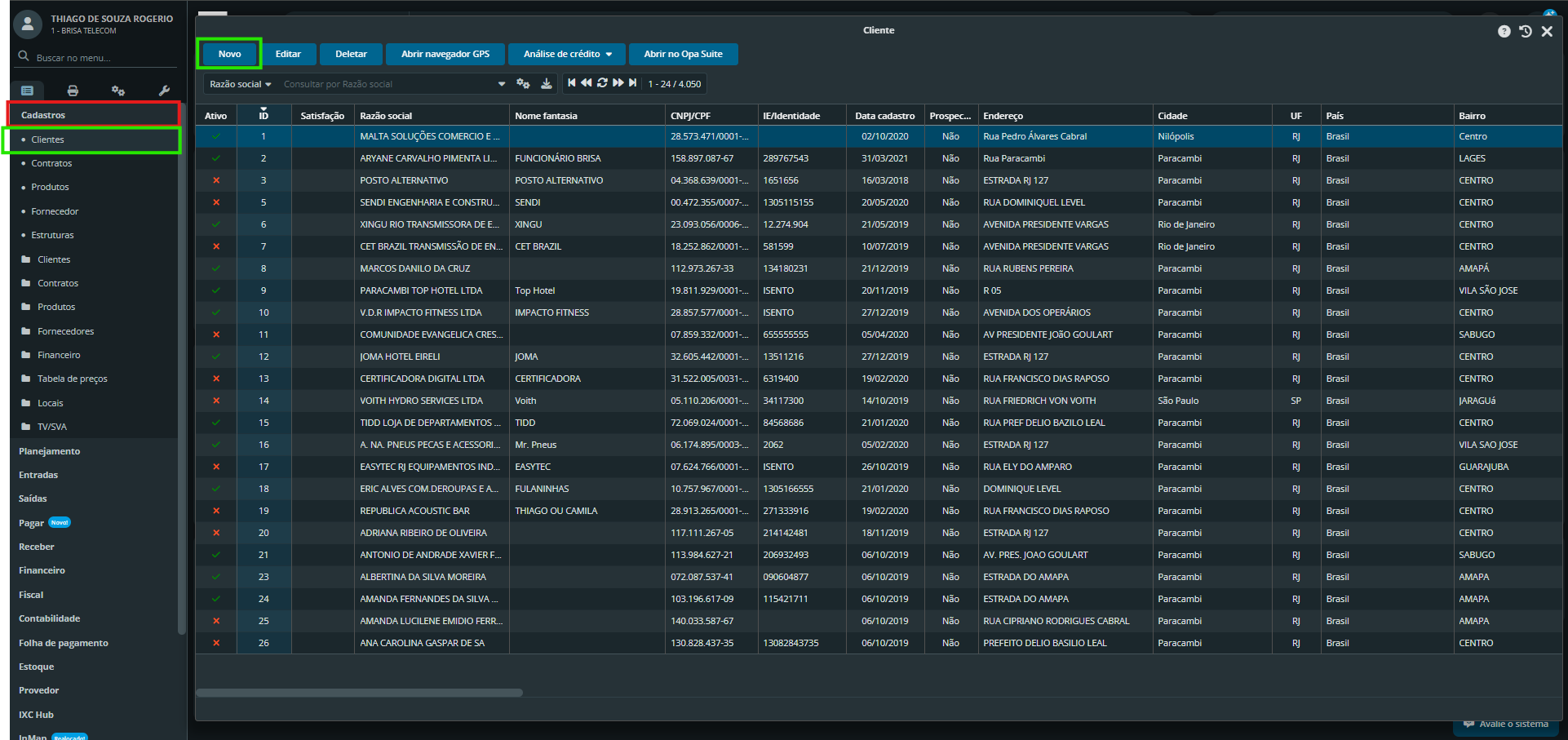 - Irá abrir a janela Cliente, de um clique em Novo .