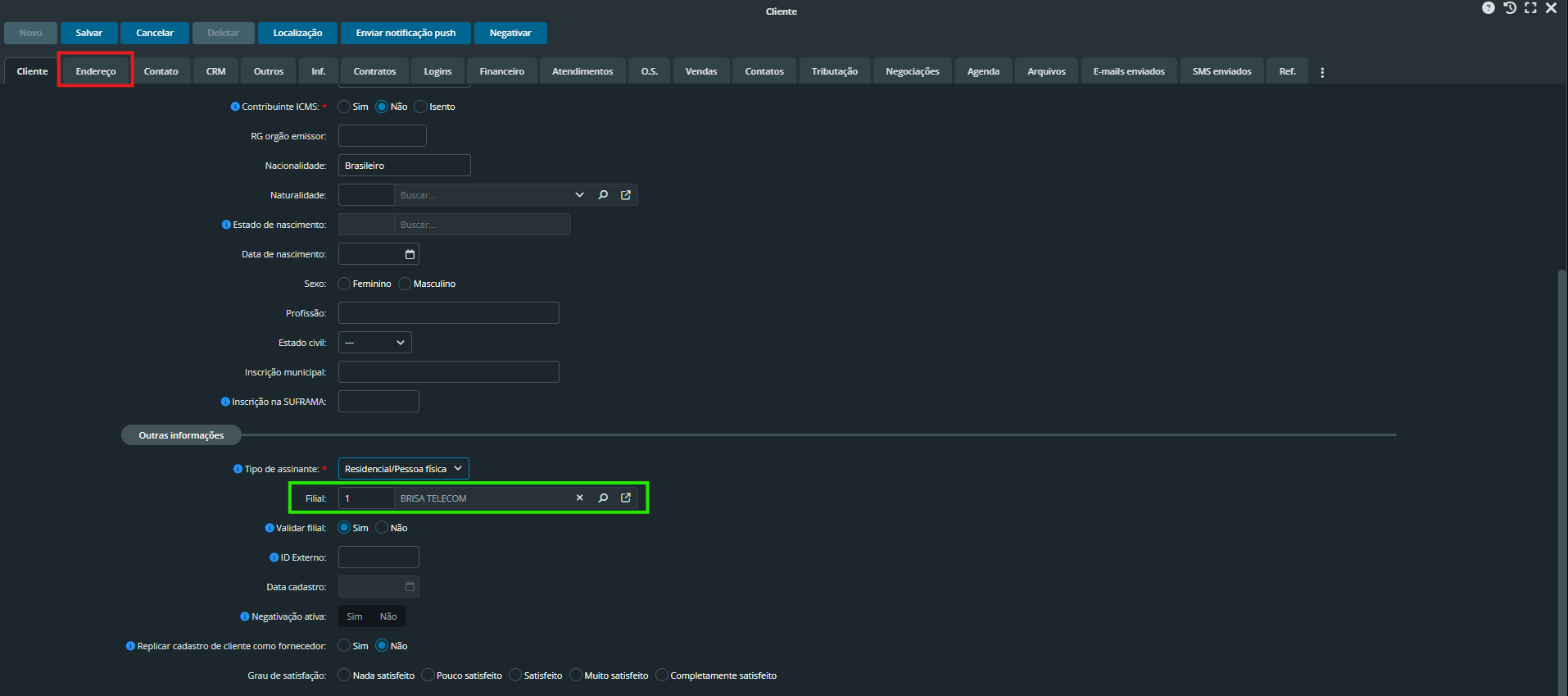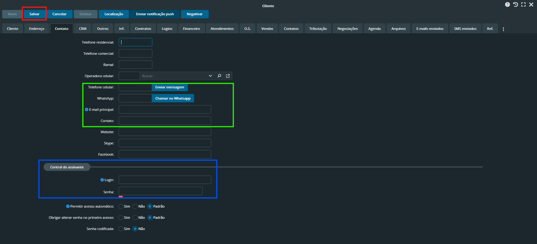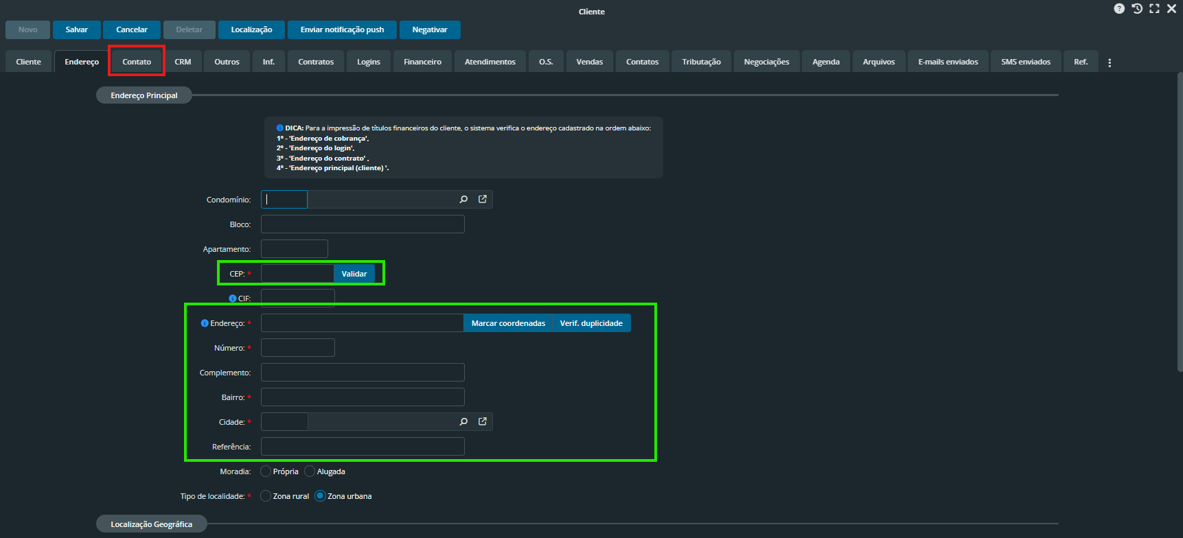 4 - Se o cliente enviar um outro número de recado, preencher na aba contato, caso contrário pode deixar em branco.