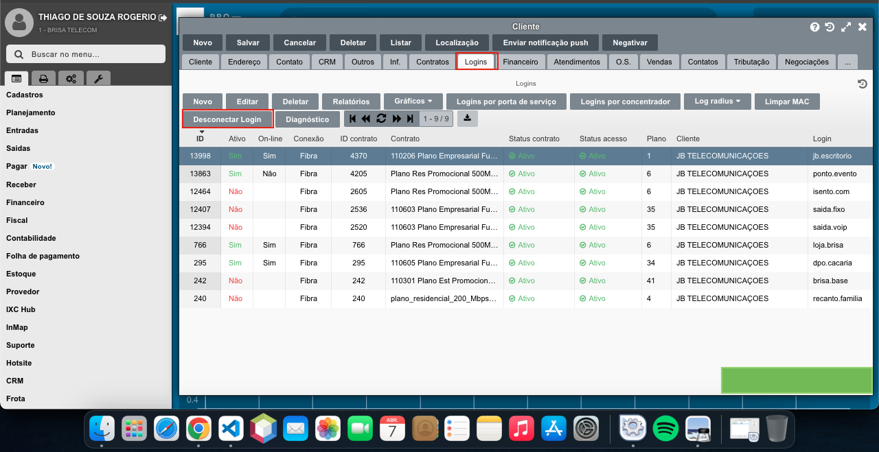 E depois clique no sub-menu Desconectar Login. - Após realizar o procedimento irá aparecer uma mensagem de sucesso ou falha no canto inferior direito de sua página.