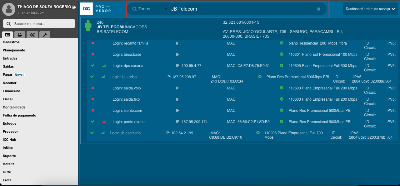 - Na janela principal pesquise o nome do cliente.
