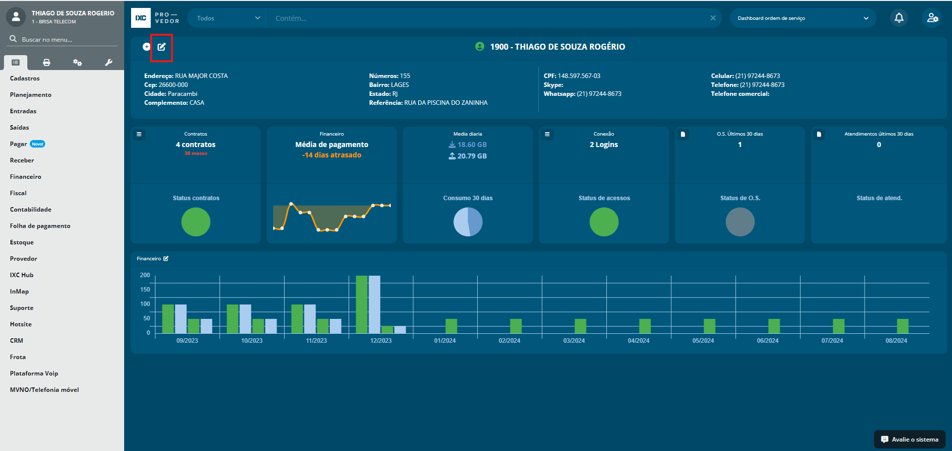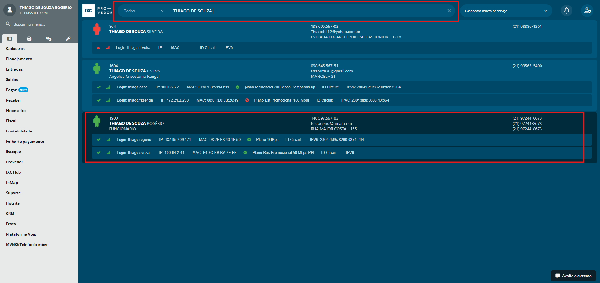 - Na Janela Principal Digite o nome do cliente e selecione o mesmo.
