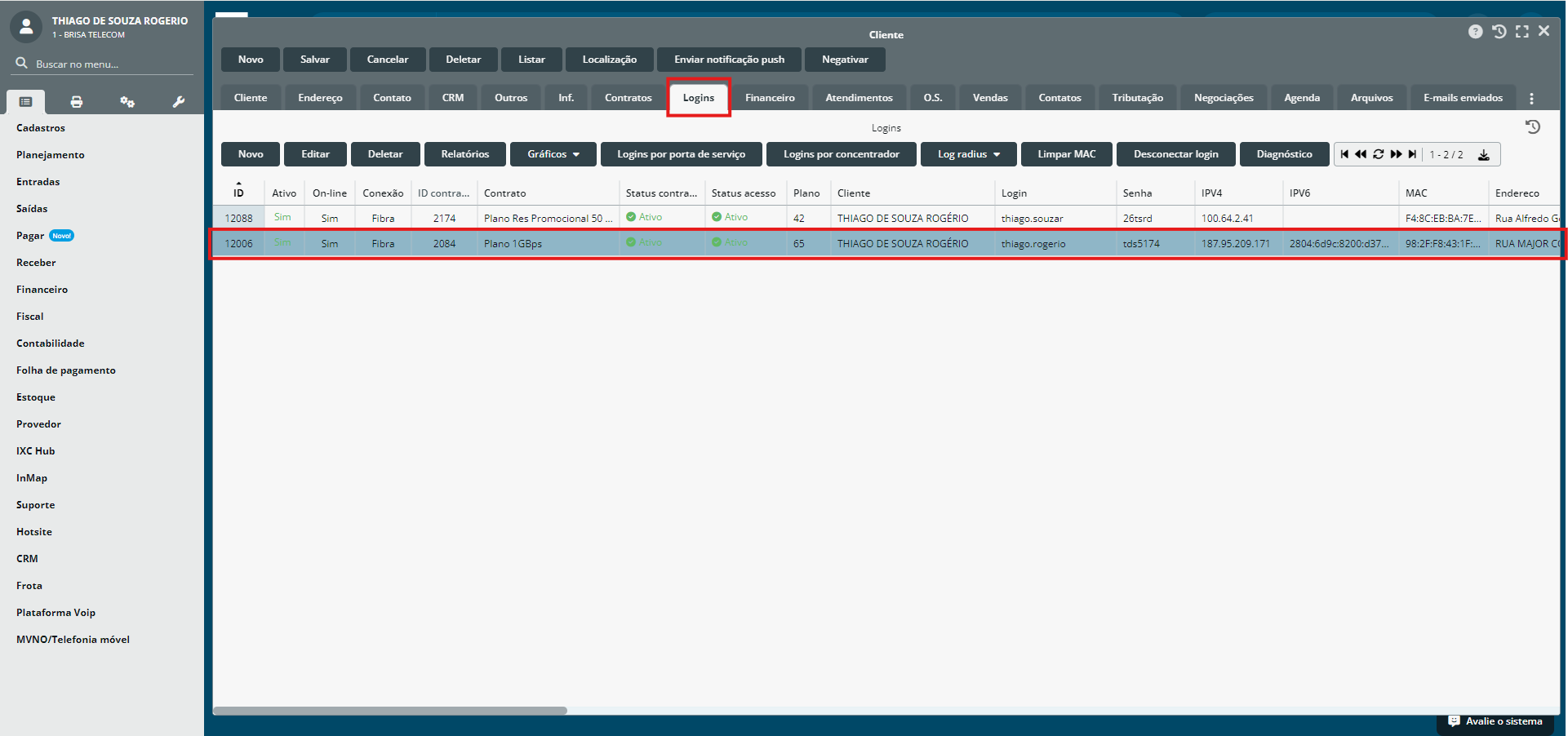 E depois dê um duplo clique no Login que deseja dar um reboot, para abrir as opções do login. - Após abrir o Login.