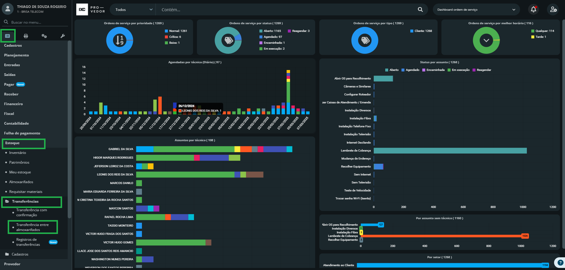 - No Menu Sistema no lado Esquerdo clique em Estoque > Transferências > Transferência entre almoxarifados.